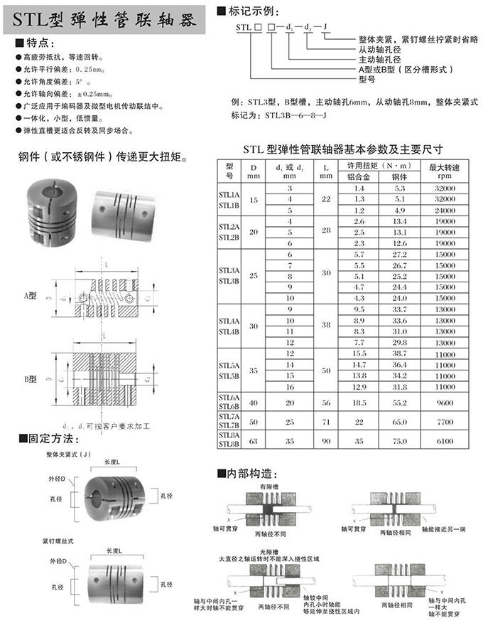 瑞安市寶德隆機械配件有限公司提供STL型彈性管聯(lián)軸器具有拆裝方便,快速安裝等特點,廣泛用于連接/固定輪轂孔和零件的軸,例如齒輪,錐齒輪,鏈輪,葉輪,凸輪,皮帶輪和飛輪等軸的聯(lián)結(jié)固定,咨詢電話:18906872378
