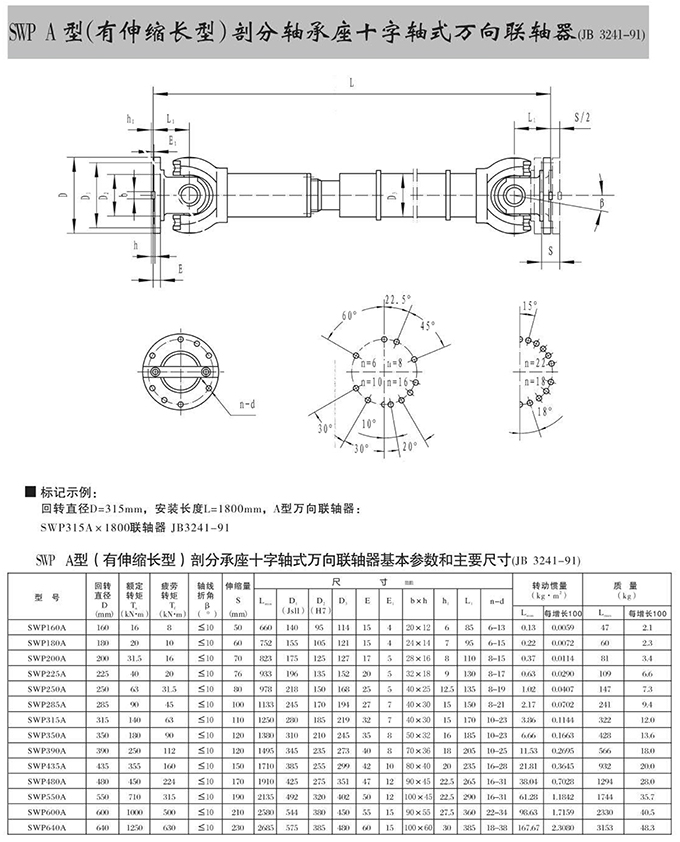瑞安市寶德隆機(jī)械配件有限公司提供SWP A型(有伸縮長(zhǎng)型)部分軸承座十字軸式萬(wàn)向聯(lián)軸器具有拆裝方便,快速安裝等特點(diǎn),廣泛用于連接/固定輪轂孔和零件的軸,例如齒輪,錐齒輪,鏈輪,葉輪,凸輪,皮帶輪和飛輪等軸的聯(lián)結(jié)固定,咨詢(xún)電話:18906872378