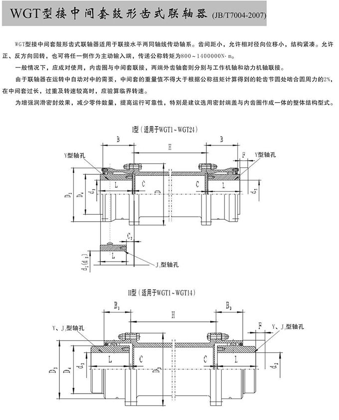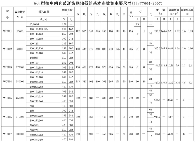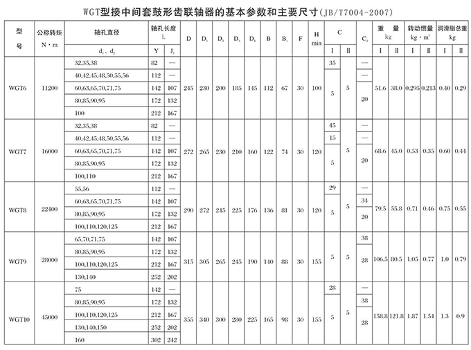 瑞安市寶德隆機械配件有限公司提供WGT型接中間套鼓形齒式聯(lián)軸器具有拆裝方便,快速安裝等特點,廣泛用于連接/固定輪轂孔和零件的軸,例如齒輪,錐齒輪,鏈輪,葉輪,凸輪,皮帶輪和飛輪等軸的聯(lián)結固定,咨詢電話:18906872378