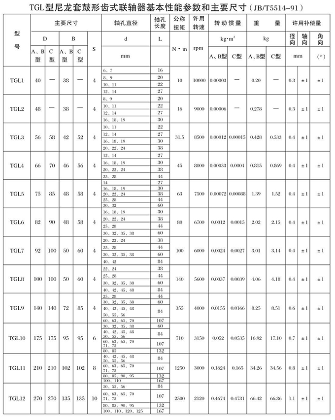 瑞安市寶德隆機(jī)械配件有限公司提供TGL型尼龍?zhí)坠男锡X式聯(lián)軸器具有拆裝方便,快速安裝等特點(diǎn),廣泛用于連接/固定輪轂孔和零件的軸,例如齒輪,錐齒輪,鏈輪,葉輪,凸輪,皮帶輪和飛輪等軸的聯(lián)結(jié)固定,咨詢電話:18906872378